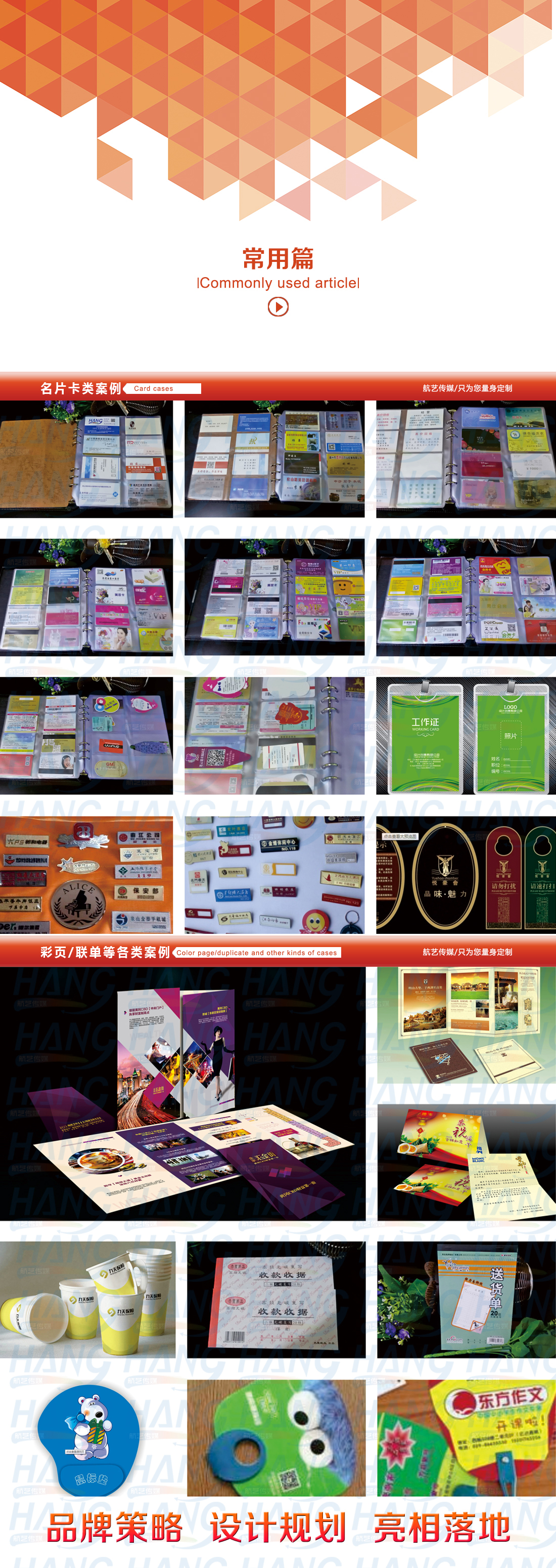 专业承接:品牌策划/VI/画册/高档菜谱菜单/彩页/无碳表单/手提袋/包装/纸杯/鼠标垫/不干胶/名片/会员卡/喷绘写真/易拉宝/海报/X展架/标识标牌/灯箱/吸塑雕刻/LED显示屏等设计制作 网站的建设和推广